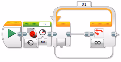Both programs are equivalent in function, so what are the differences?The first one only runs the Motor block once, whereas the second runs the Motor block at each iteration of the loop. Although this is less efficient, it is perhaps easier to read and understand. This programming style may be useful to debug long programs.