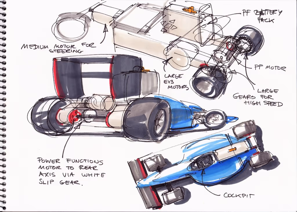 It varies. Sometimes it can be a certain brick, like the banana gear, that inspires me with new possibilities. Sometimes it's something I'm doing, like cycling, sitting on a swing, or walking. I begin to wonder how a robot would do the same movement and try to build that. And sometimes it's a toy I'd like to have - like a remote controlled dragon. Once inspired, I start building that.