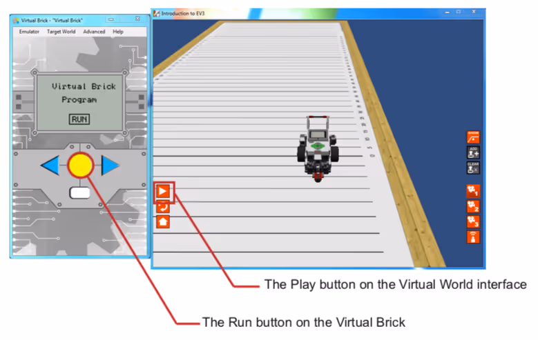 - Program a real EV3 brick or a virtual one using the interactive simulator